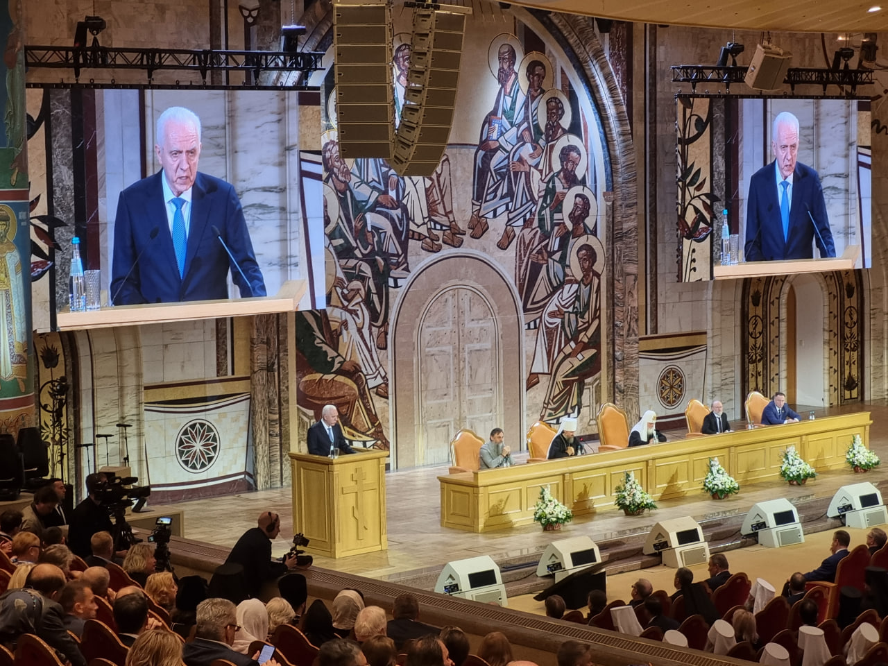 Участников пленарного заседания приветствовал Предстоятель Русской Православной Церкви.