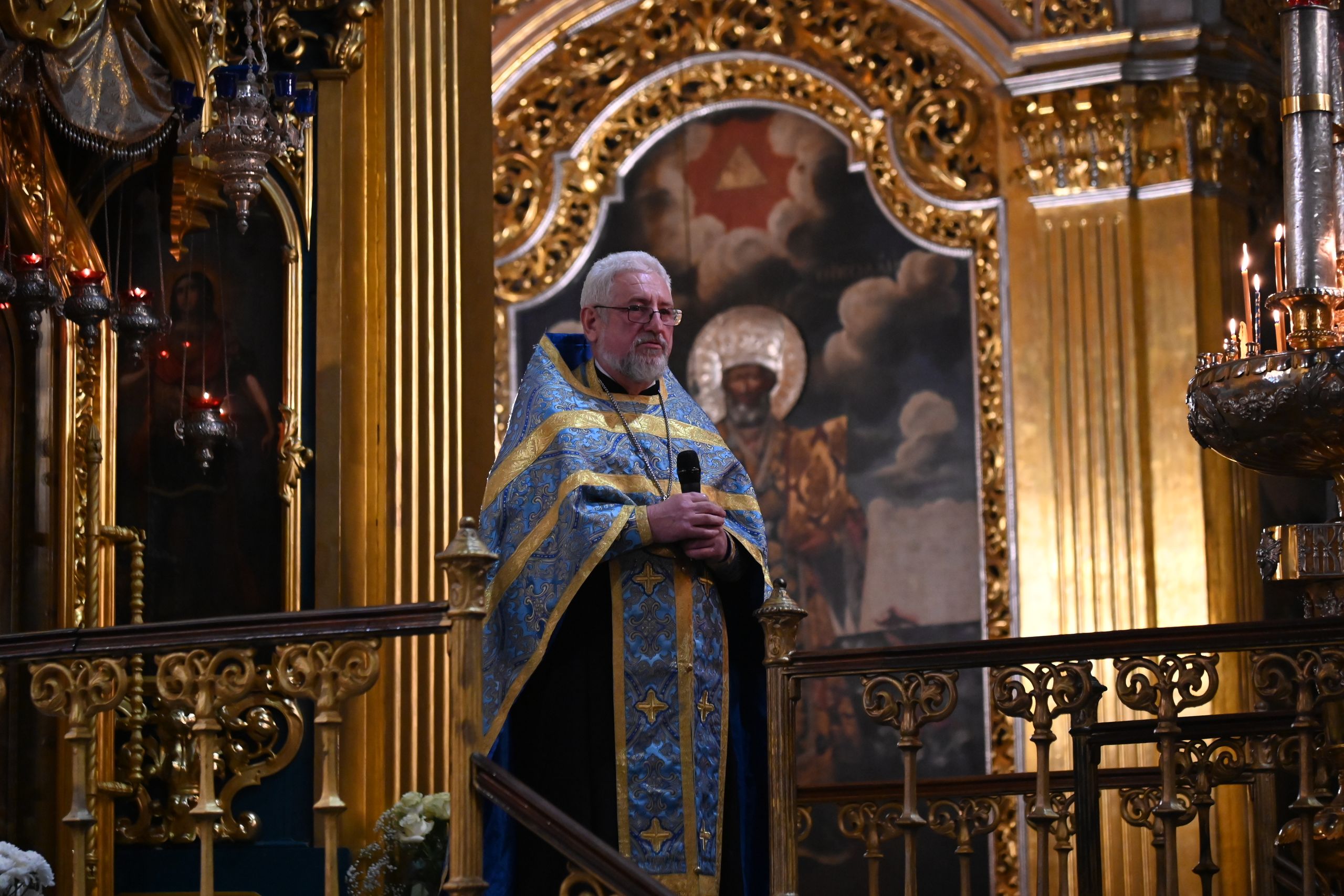 По завершении акафиста иерей Александр Сусенков, клирик храма Рождества Богородицы д. Михновка, Смоленского округа, обратился к молящимся с проповедью.