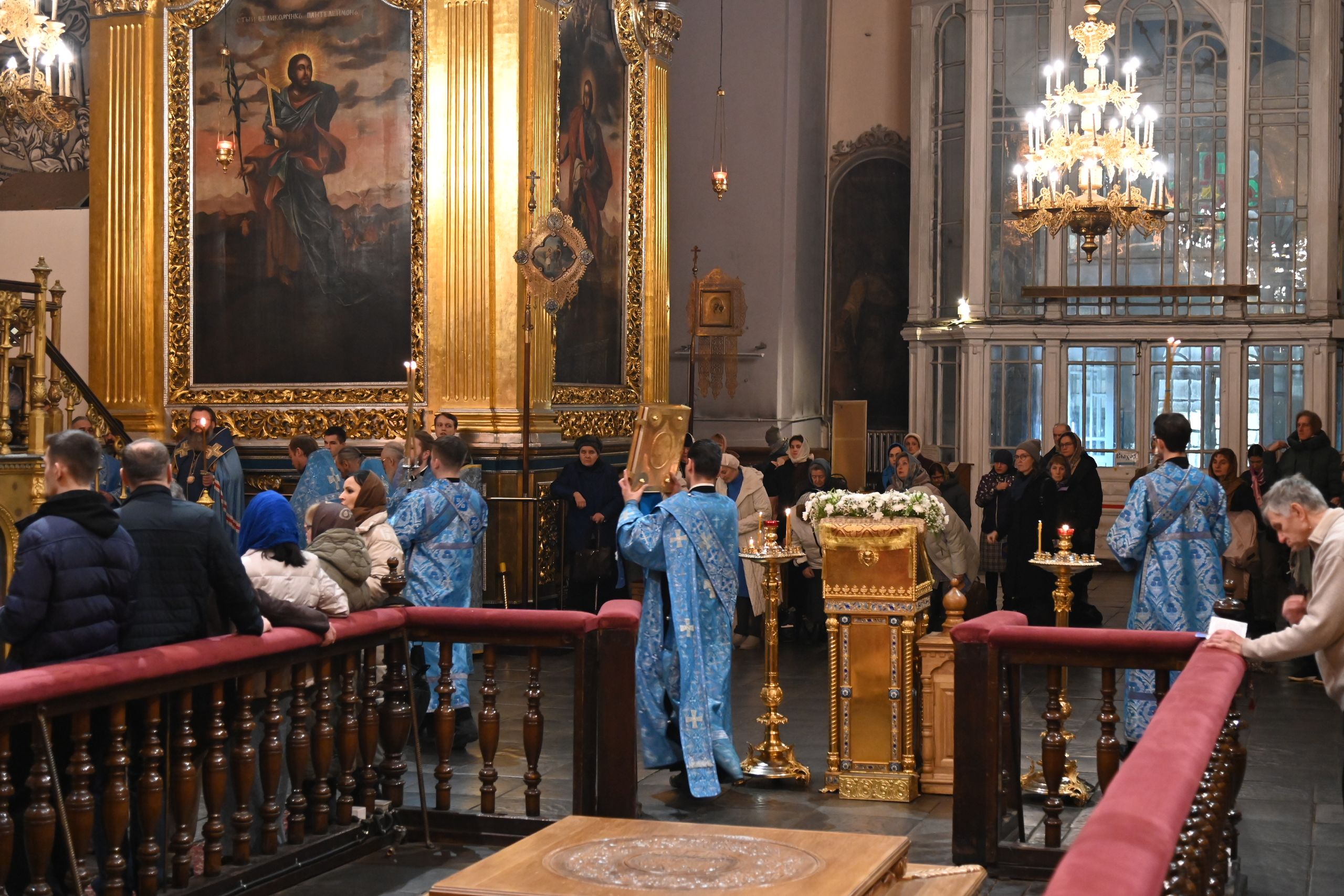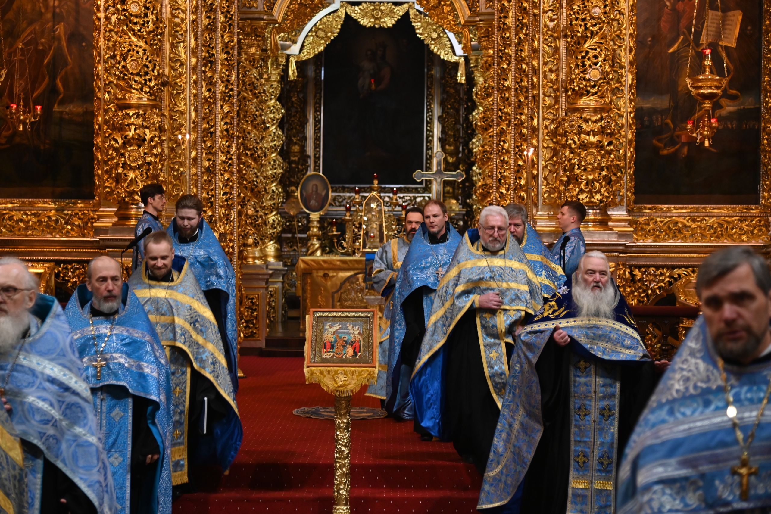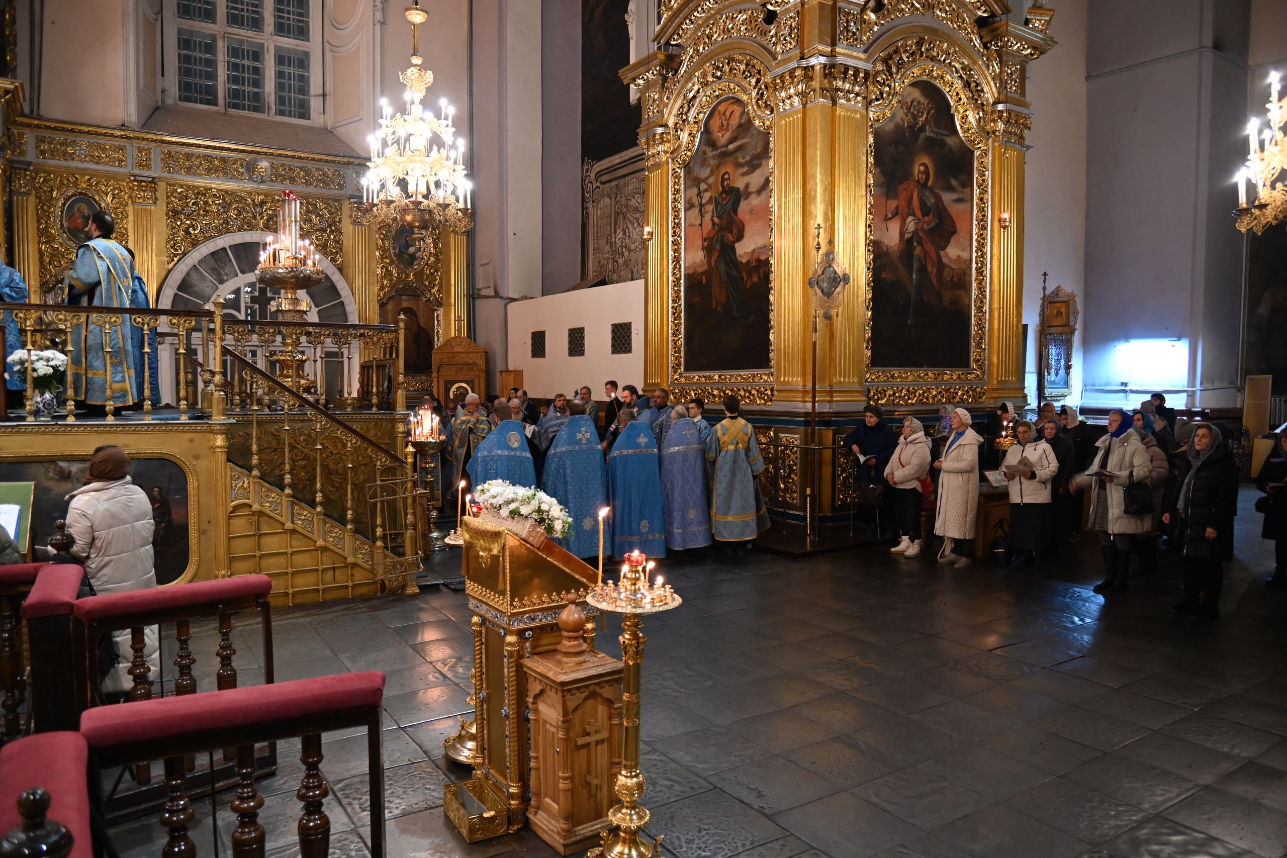 Вечером 2 декабря 2025 года митрополит Смоленский и Дорогобужский Исидор совершил вечернее богослужение с чтением акафиста Пресвятой Богородице у Смоленской иконы Божией Матери Одигитрии в Успенском кафедральном соборе города Смоленска.