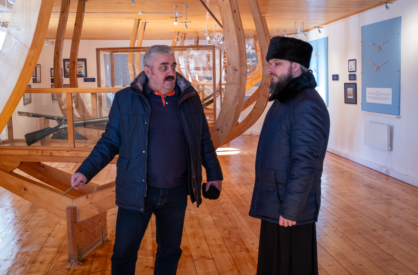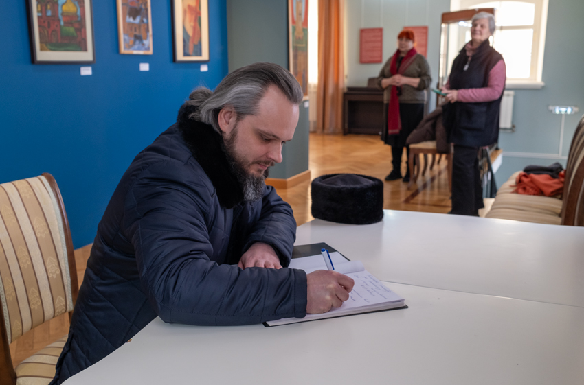 По приезде гостей встретила гениральный директор музея-заповедника Кулакова Надежда Викторовна с сотрудниками. Сотрудник научно-просветительского отдела музея Кривцов Валерий Дмитриевич познакомил гостей с экспозицией усадебного дома, а так же с экспозицией обновленного музея адмирала Нахимова П.С.
