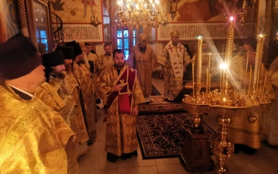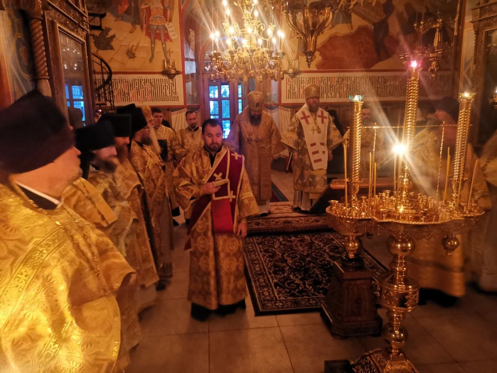 Архипастырю сослужили настоятель монастыря архимандрит Антоний (Мезенцов), братия обители в священном сане.