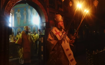 3 января 2025 года, в Предпразднство Рождества Христова, день памяти святителя Петра, митрополита Киевского, Московского и всея Руси, чудотворца и благоверной княгини Иулиании Вяземской, митрополит Смоленский и Дорогобужский Исидор и епископ Рославльский и Десногорский Мелетий совершили Божественную литургию в Свято-Троицком Болдином мужском монастыре.