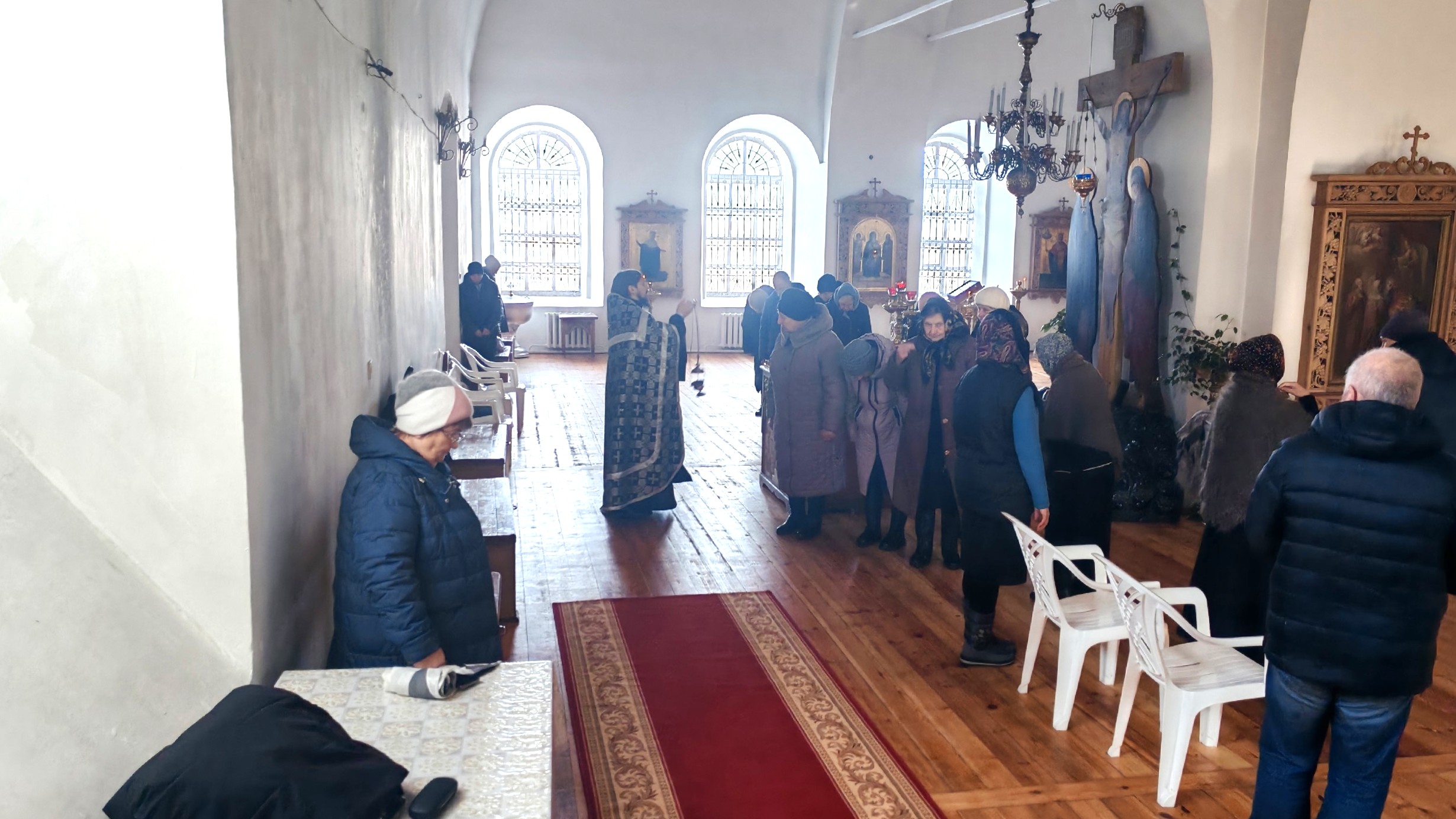 23 февраля 2026 года, в понедельник первой седмицы Великого поста, епископ Вяземский и Гагаринский Алексий молился за уставным великопостным богослужением в Свято-Троицком кафедральном соборе города Вязьмы.