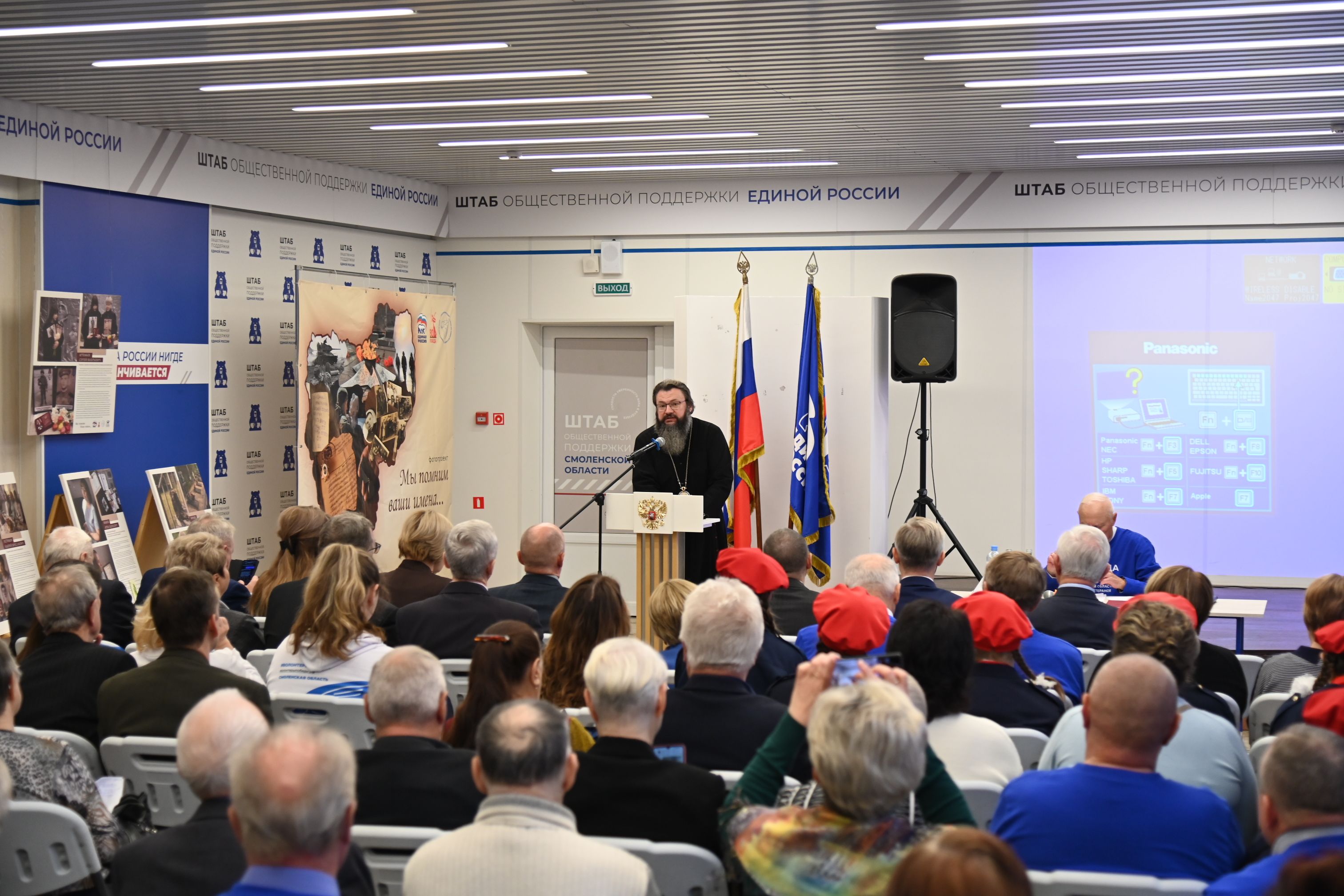 Глава Смоленской митрополии обратился к председателю Организации Виталию Владимировичу Вовченко и к ветеранам, присутствующим на мероприятии, отметив: