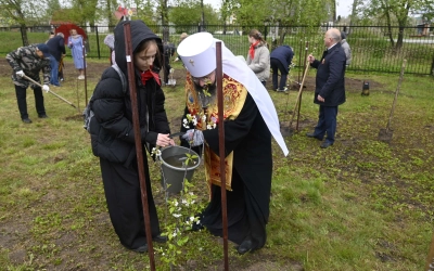 12 мая 2025 года после Божественной литургии в Казанском храме города Рудни в сквере рядом с памятником-монументом реактивной установке «Катюша» Глава Смоленской митрополии митрополит Смоленский и Дорогобужский Исидор принял участие в посадке фруктового сада в честь 80-летия Победы.