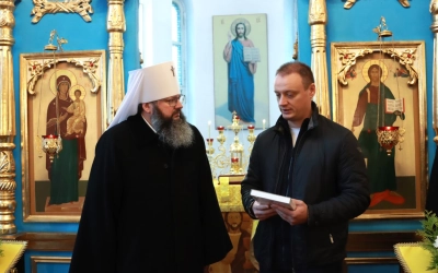 Архипастырь отметил труды Романа Николаевича Захарова на благо жителей Ярцевского муниципального округа и передал ему в дар икону святого благоверного великого князя Александра Невского.