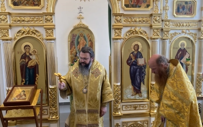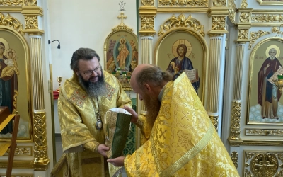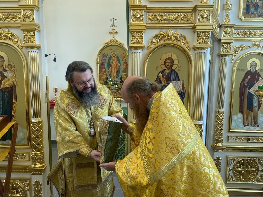 Высокопреосвященнейшему Владыке сослужил благочинный Сафоновского церковного округа иерей Сергий Чайкин.