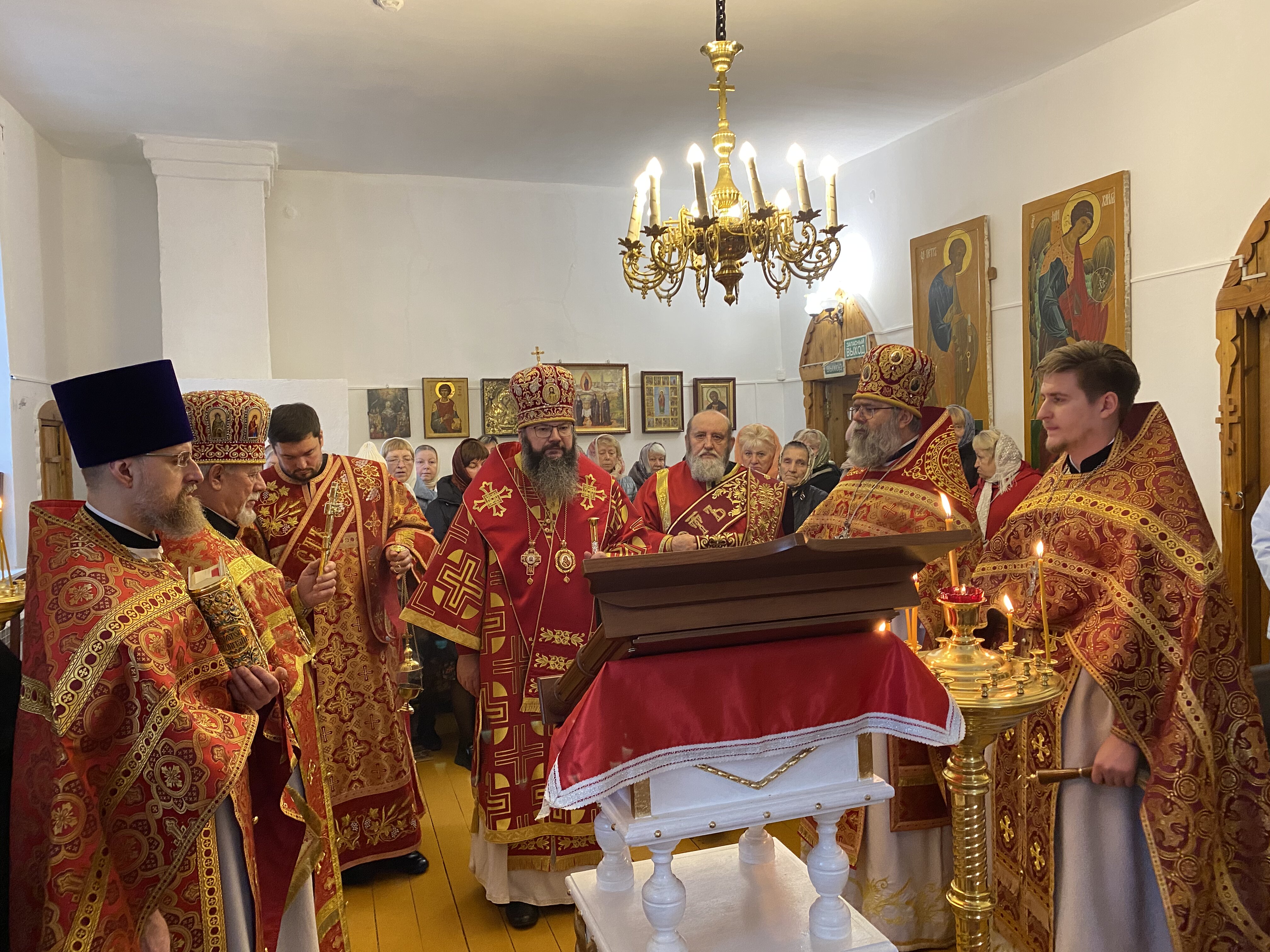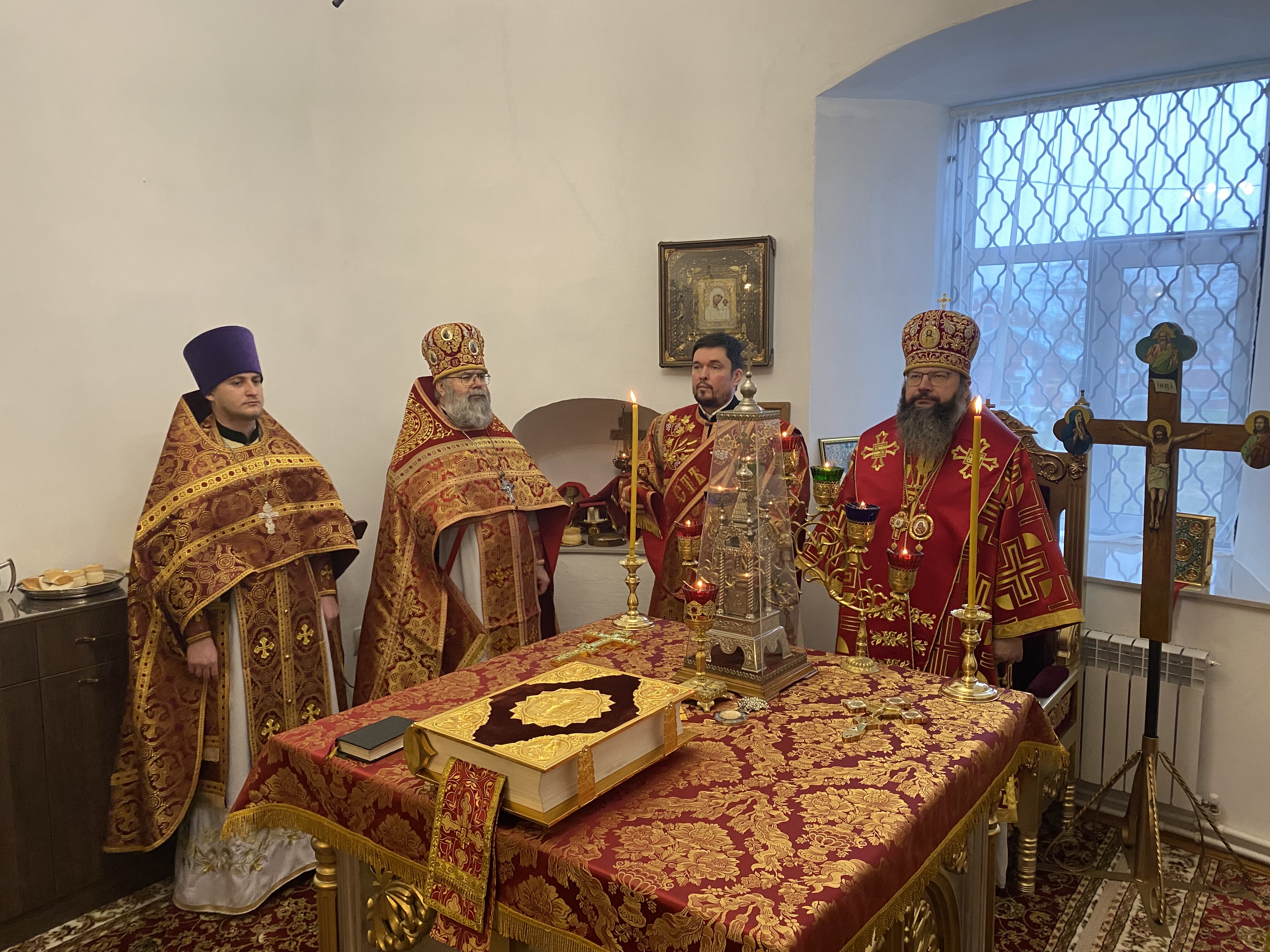 Его Высокопреосвященству сослужили благочинный Ярцевского церковного округа протоиерей Василий Мовчанюк, настоятель храма в честь святых апостолов Петра и Павла г. Дорогобужа протоиерей Николай Канчук, иерей Константин Гарин, клирик монастыря иерей Димитрий Коротаев.