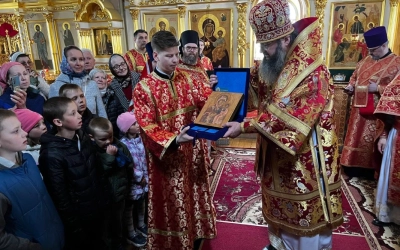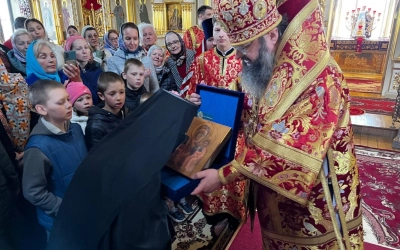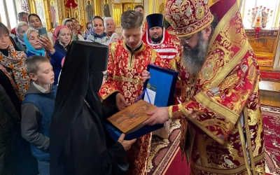 По окончании богослужения митрополит Исидор передал в дар святой обители икону Смоленской Божией Матери «Одигитрия».