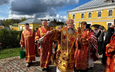 Перед началом богослужения в монастырь из Смоленской епархии был принесен ковчег с частицами святых многоцелебных мощей преподобного Герасима Болдинского.