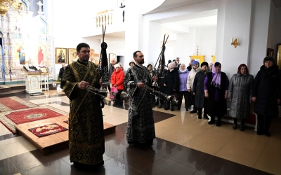 По окончании Литургии Преждеосвященных Даров митрополит Виктор (Олейник) и протоиерей Василий Мовчанюк от лица всего духовенства и мирян поздравили митрополита Смоленского и Дорогобужского Исидора с днем Архиерейской хиротонии (17 марта 2025 года исполнилось 12 лет со дня Архиерейской хиротонии).