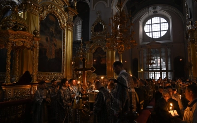 Песнопения богослужения исполнили певчие Архиерейского хора Успенского собора.