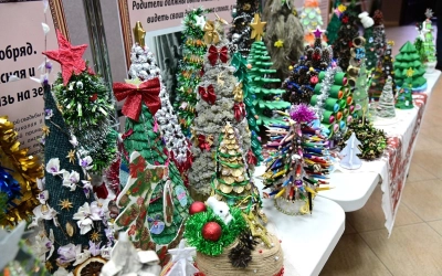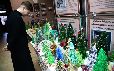 После богослужения митрополит Исидор посетил выставку рождественских ёлок, организованную в холле приходского духовно-просветительского центра.