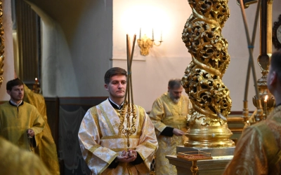 Высокопреосвященнейшему Владыке сослужили секретарь Смоленского епархиального управления, настоятель Свято-Успенского собора иерей Владислав Баган, а также духовенство кафедрального храма.