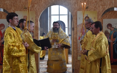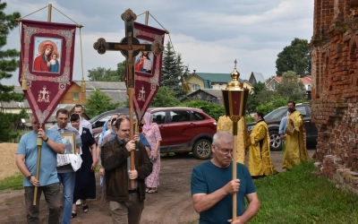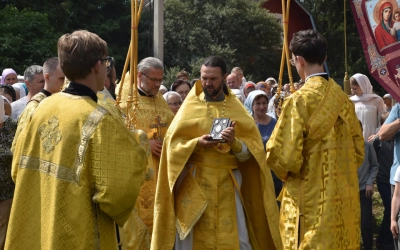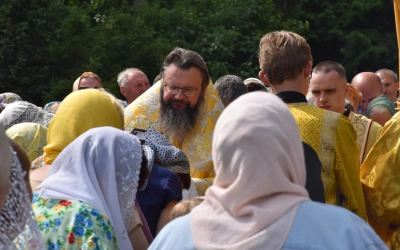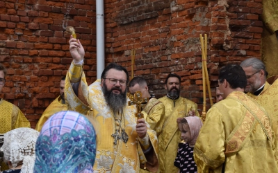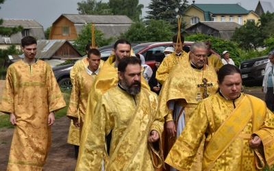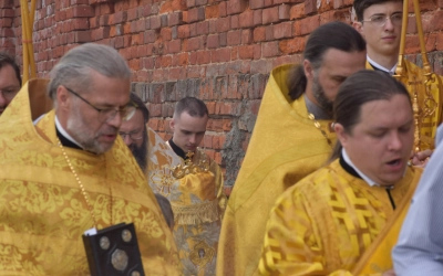 Затем архипастырь вместе с духовенством и мирянами совершили Крестный ход вокруг храма в честь святых апостолов Петра и Павла.