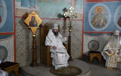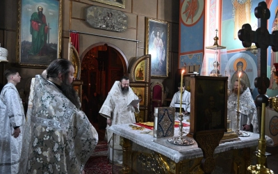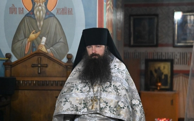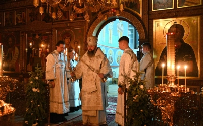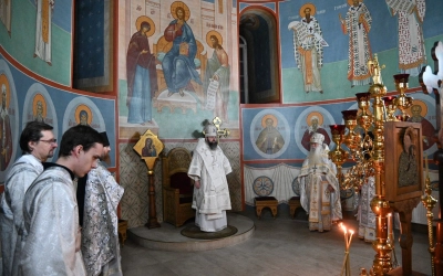 Его Высокопреосвященству сослужили настоятель монастыря архимандрит Антоний (Мезенцов), братия обители в священном сане.
