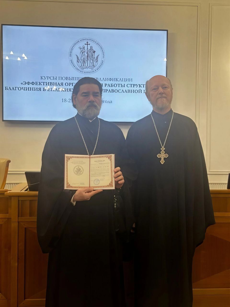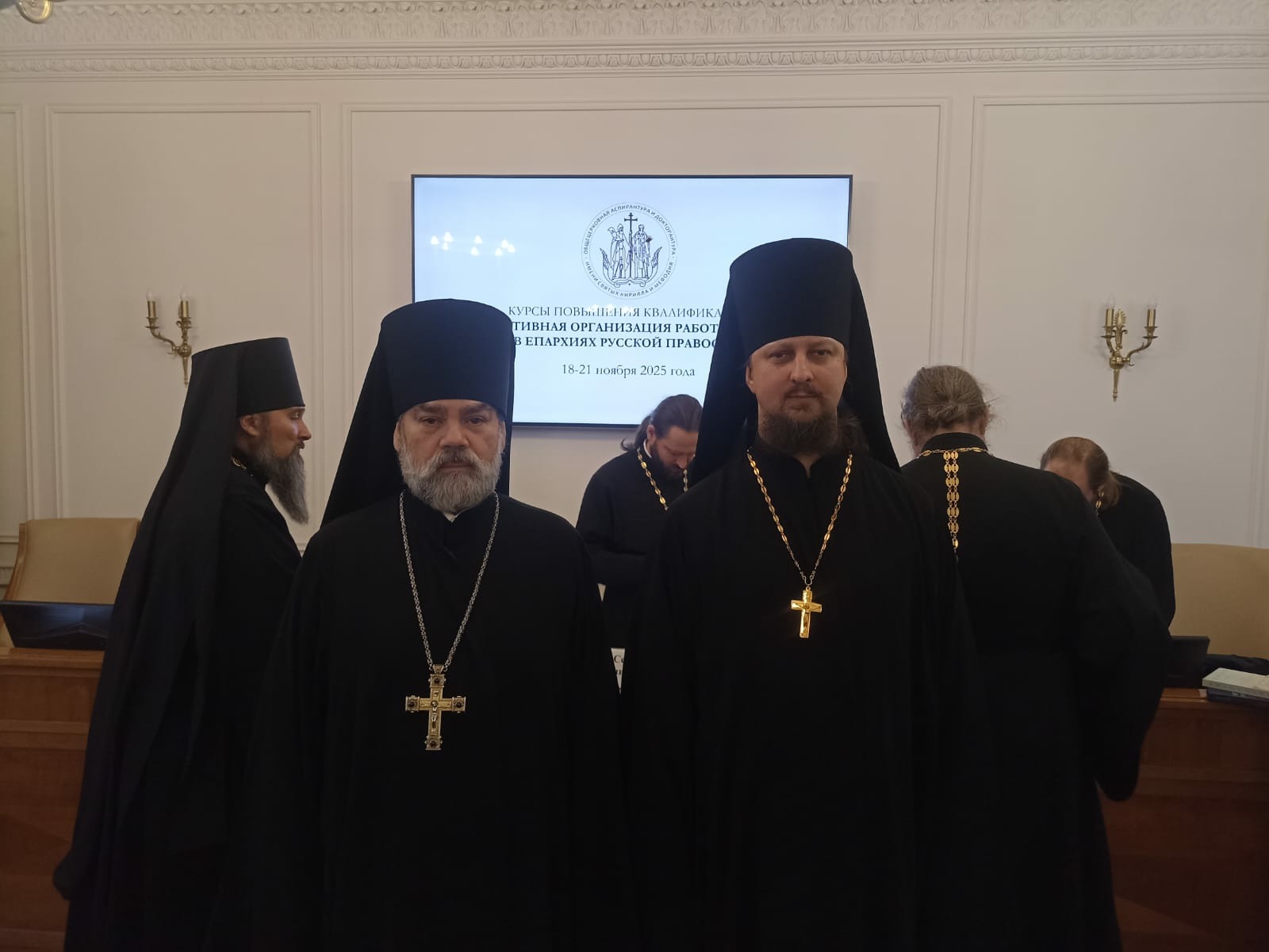 18–21 ноября 2025 г. в Общецерковной аспирантуре и докторантуре имени святых равноапостольных Кирилла и Мефодия прошли курсы повышения квалификации «Эффективная организация работы структур благочиния в епархиях Русской Православной Церкви». Обучение прошли слушатели из более 70 епархий Русской Православной Церкви.