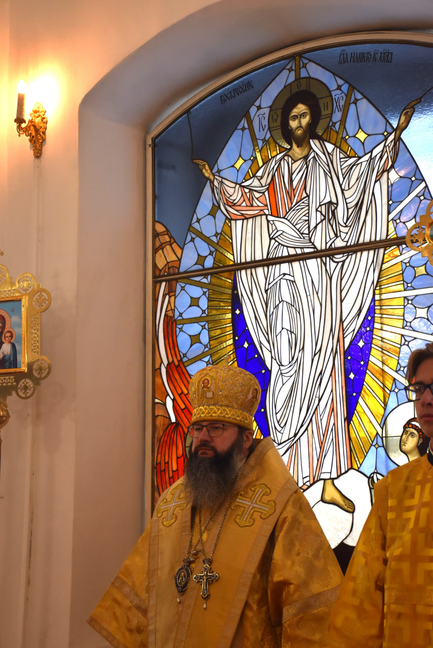 7 сентября 2025 года, в Неделю 13-ю по Пятидесятнице, день памяти Перенесения мощей апостола Варфоломея, на Вознесенском подворье Свято-Владимирского мужского монастыря на истоке Днепра в городе Гагарин Смоленской области была совершена Божественная литургия архиерейским чином.