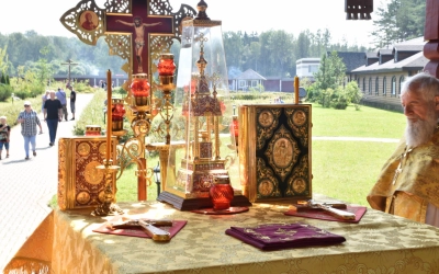 За богослужением молились настоятельница Спасо-Богородицкого Одигитриевского женского монастыря игумения Ангелина (Нестерова), братия Свято-Троицкого Маркова мужского монастыря Витебской епархии: иеромонах Алипий (Потапов), схииеродиакон Гавриил, иеродиакон Герман, руководители и сотрудники региональных органов власти и органов местного самоуправления, многочисленные прихожане, паломники, гости обители.