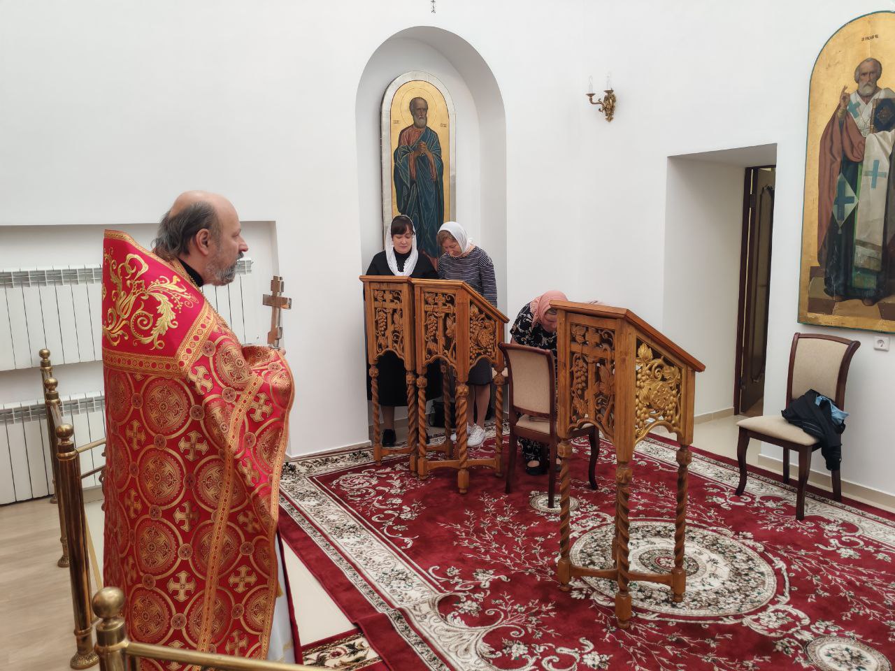 В заключение Божественной литургии отец Олег совершил славление и молитву ко священномученику Макарию, первому епископу Вяземскому, после чего обратился к молящимся со словами проповеди, в которых сердечно поздравил всех присутствующих с днём памяти святого.