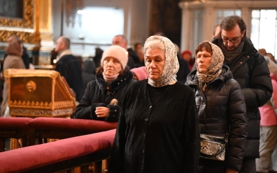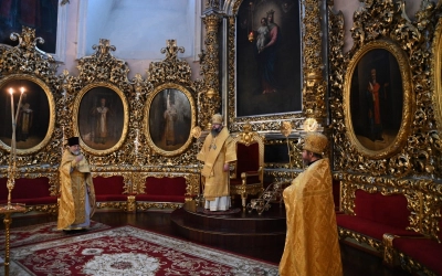 Его Высокопреосвященству сослужили клирики кафедрального храма.