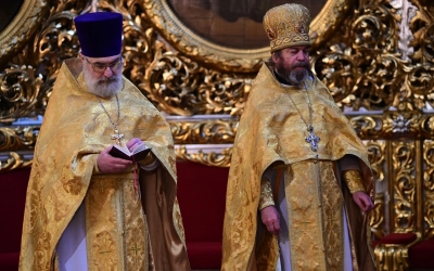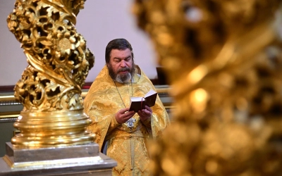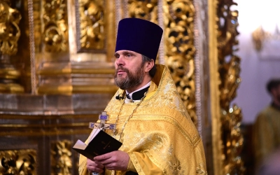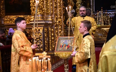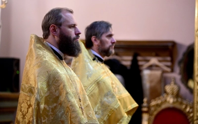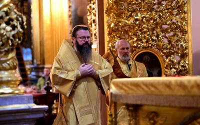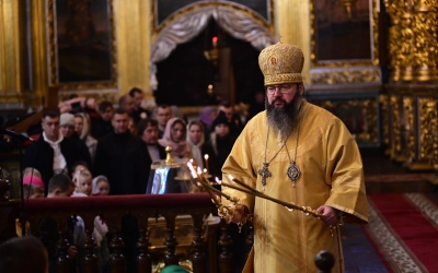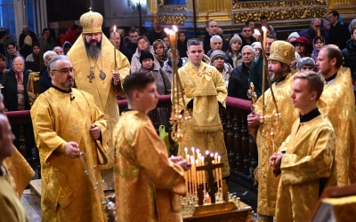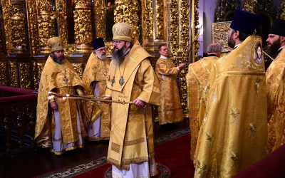 Его Высокопреосвященству сослужили секретарь Смоленского епархиального управления, настоятель кафедрального храма иерей Владислав Баган, клирик Пятигорской епархии иеромонах Елевферий (Казаков), духовенство собора.