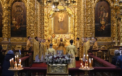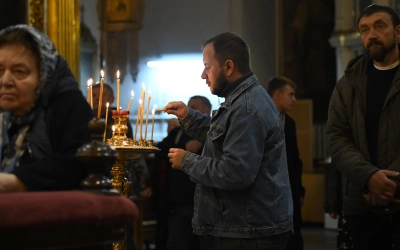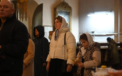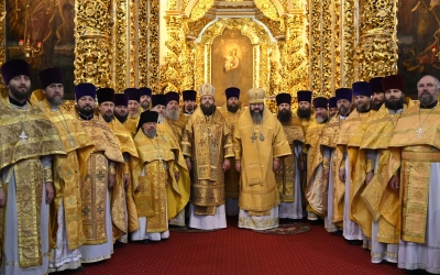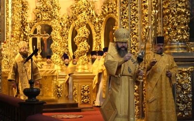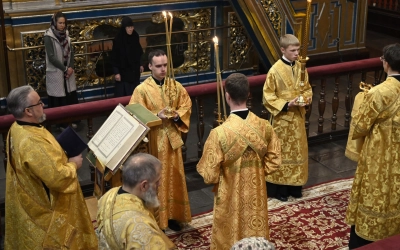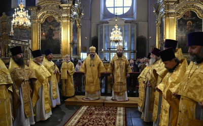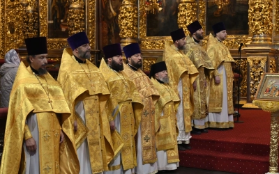 Богослужебные песнопения исполнил Архиерейский хор Успенского собора.