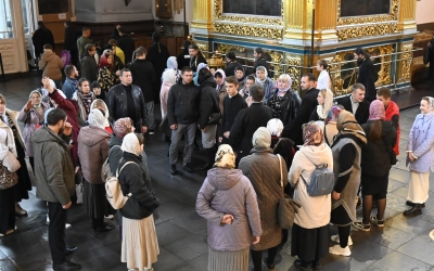 После Благодарственных молитв по Святом Причащении для гостей Смоленского кафедрального храма была организована экскурсия.