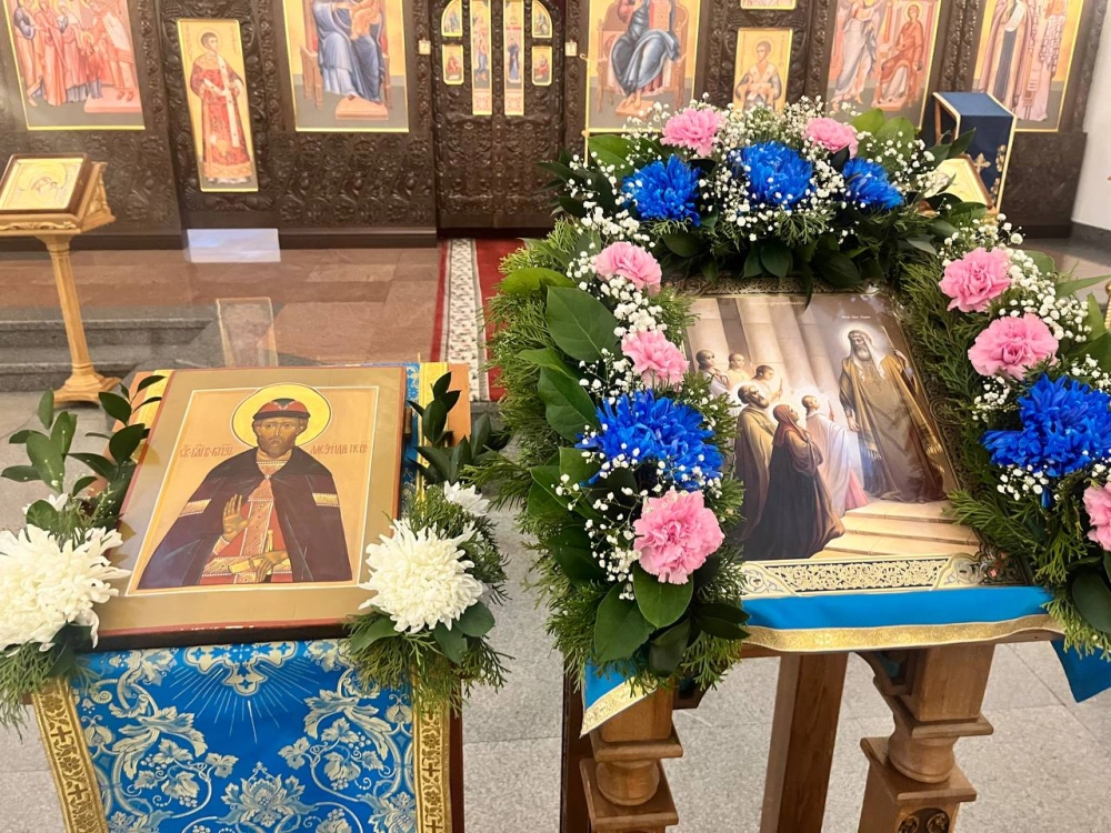 В своем слове он раскрыл суть евангельского повествования. Также присутствовали воины Вяземского гарнизона, казачество, прихожане и гости храма. По окончании Литургии было совершено славословие святому благоверному великому князю Александру Невскому у храмовой иконы и ковчега с частицей его святых мощей.