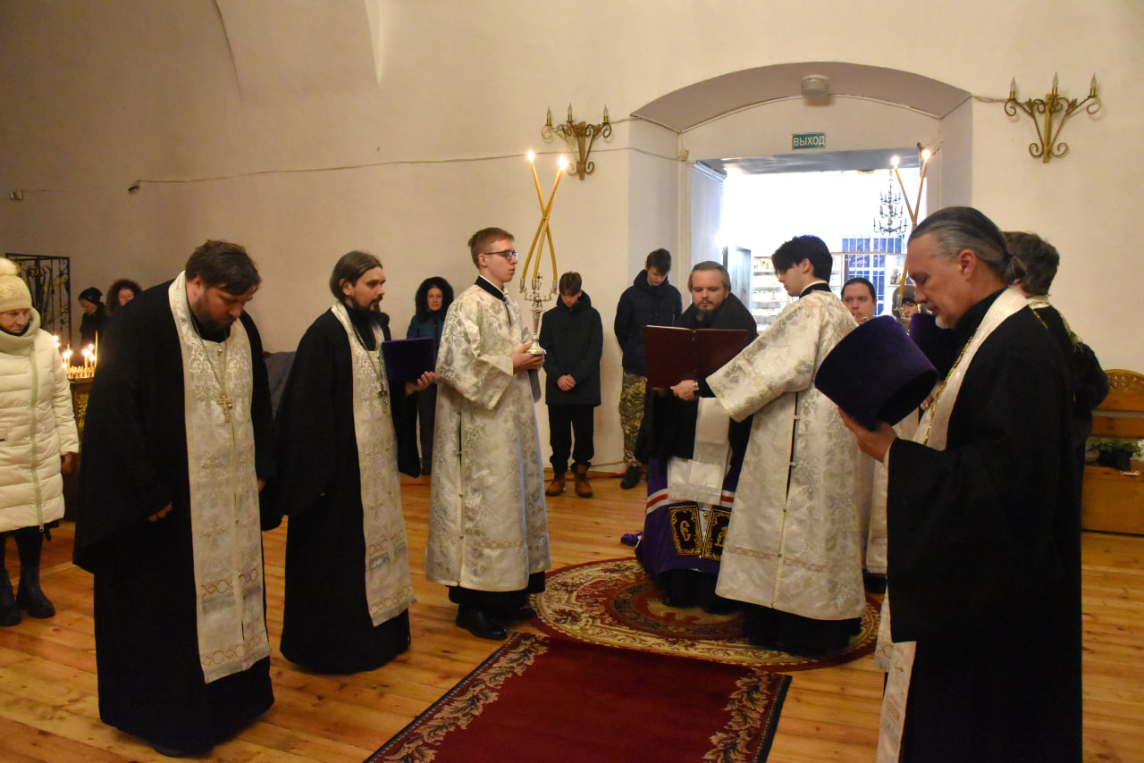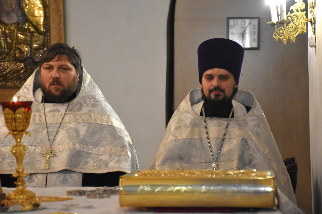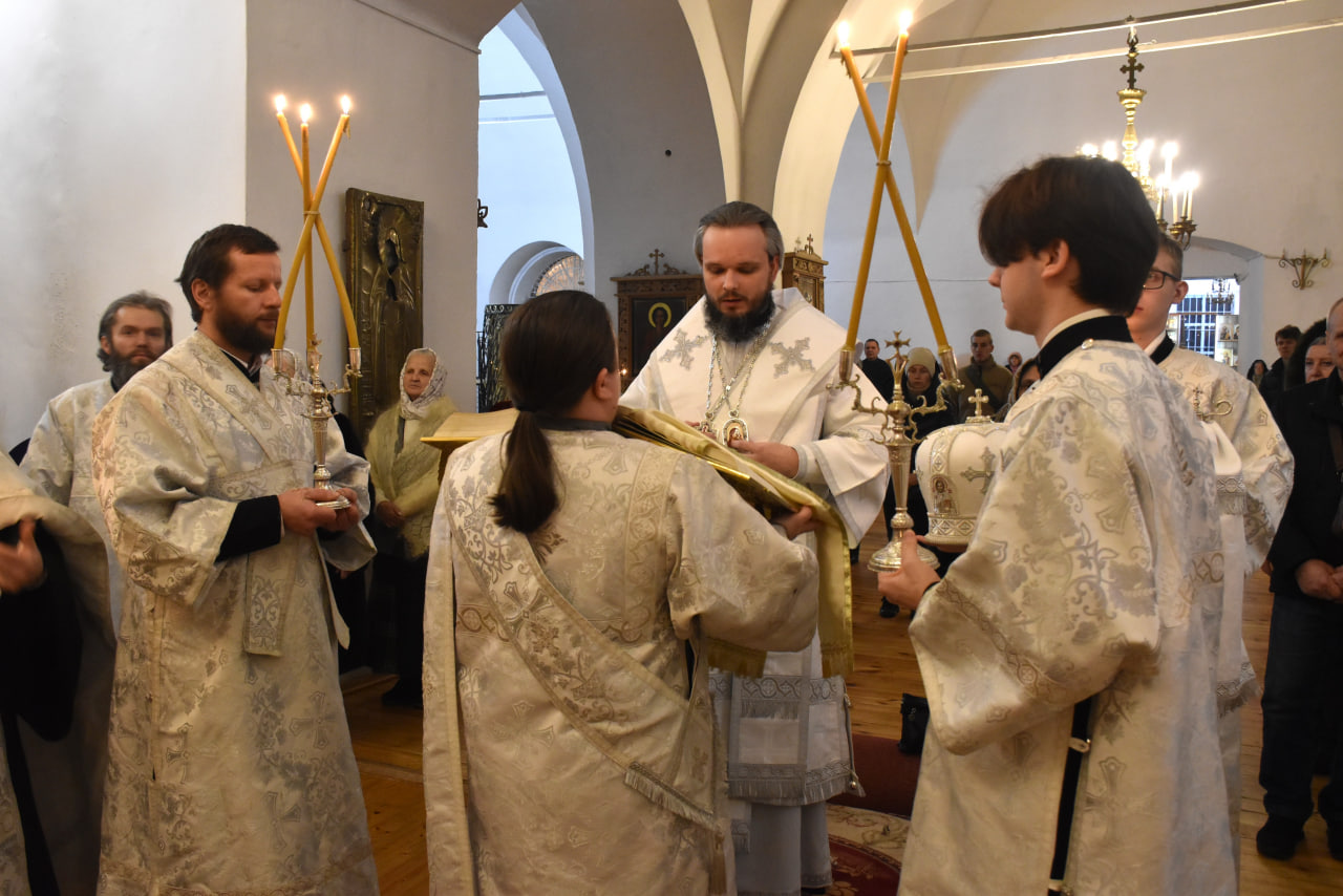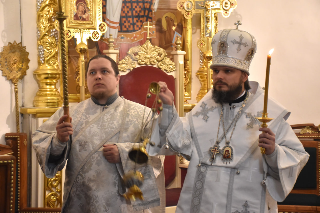 Преосвященнейшему Владыке сослужили: настоятель Свято-Троицкого кафедрального собора иерей Александр Курмелёв, иерей Максим Мамонов, иерей Владимир Покатов, иерей Александр Жухарев и диакон Евгений Ткач.