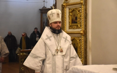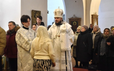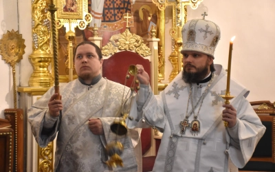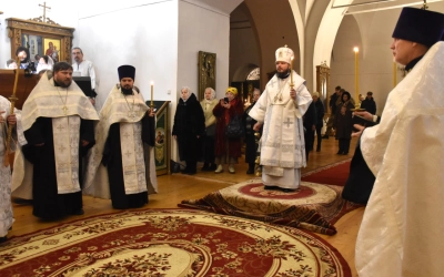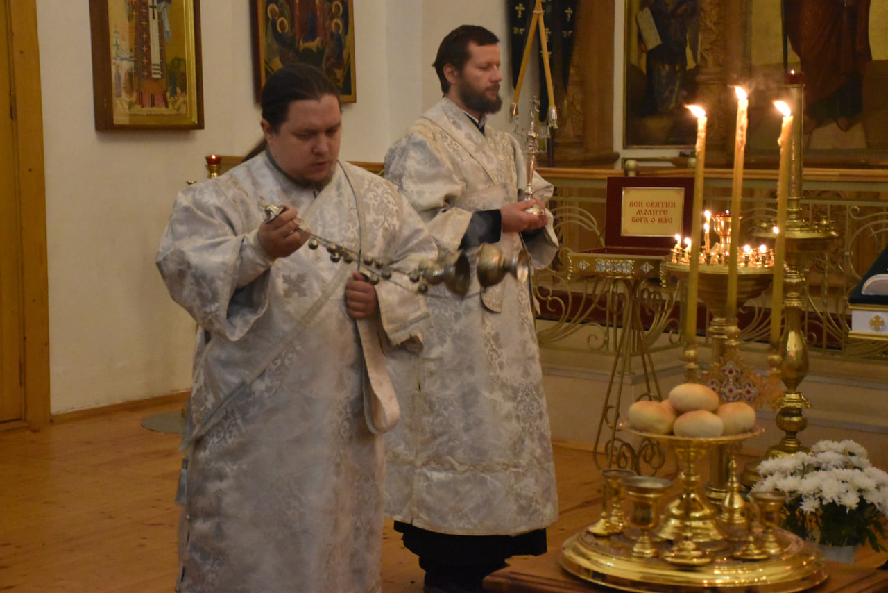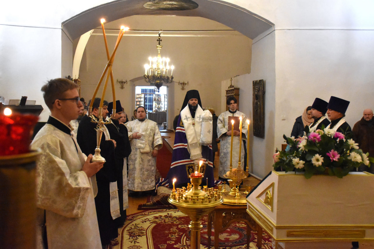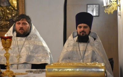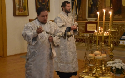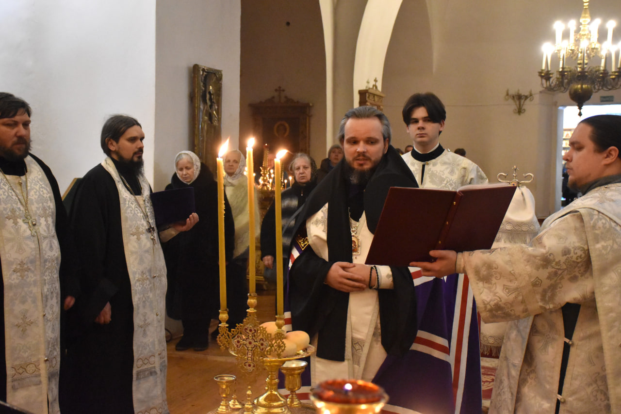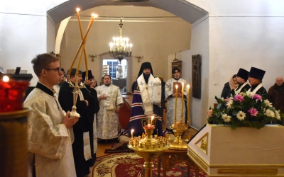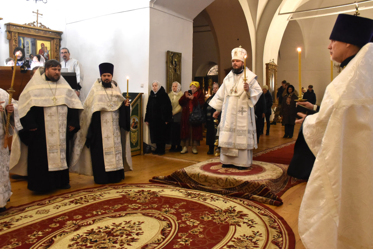 Преосвященнейшему Владыке сослужили: настоятель Свято-Троицкого кафедрального собора иерей Александр Курмелёв, иерей Максим Мамонов, иерей Владимир Покатов, иерей Александр Жухарев и диакон Евгений Ткач.