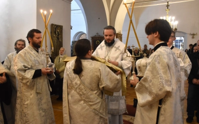 Богослужебные песнопения исполнил хор Свято-Троицкого кафедрального собора.