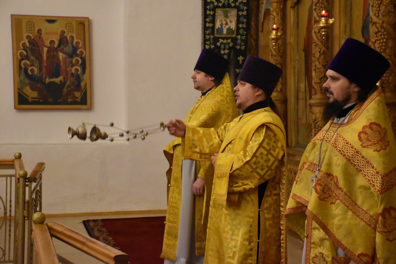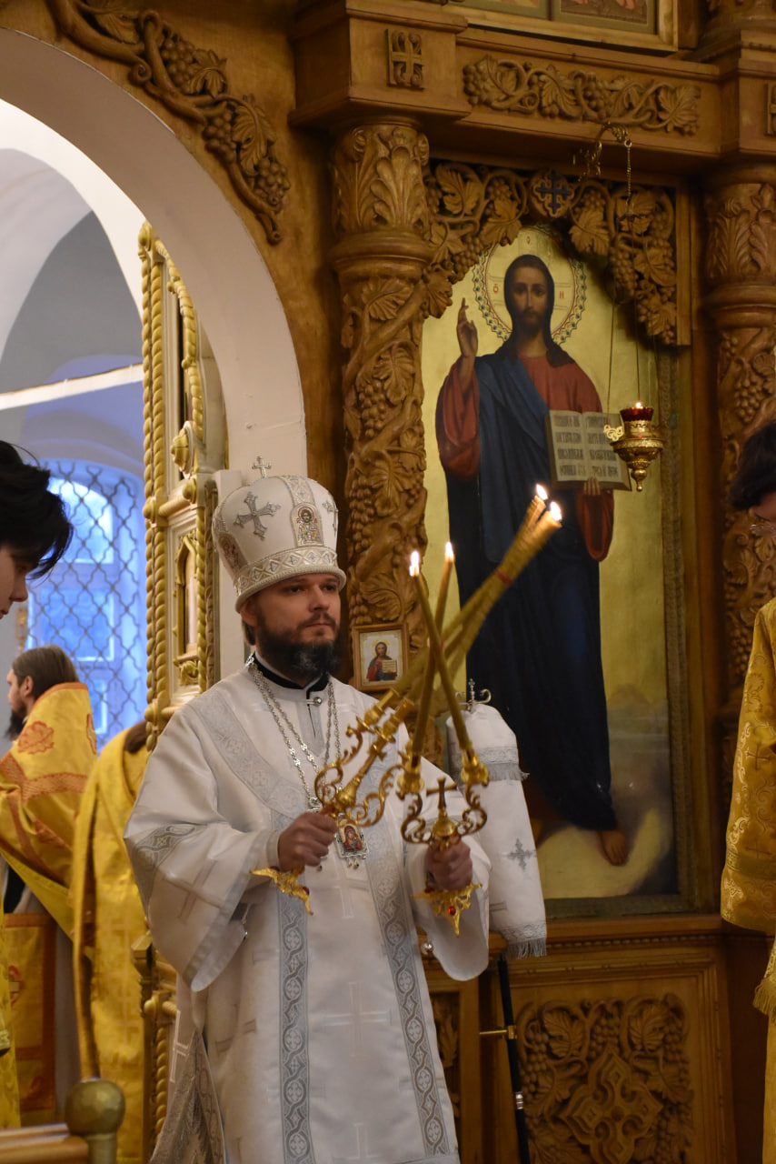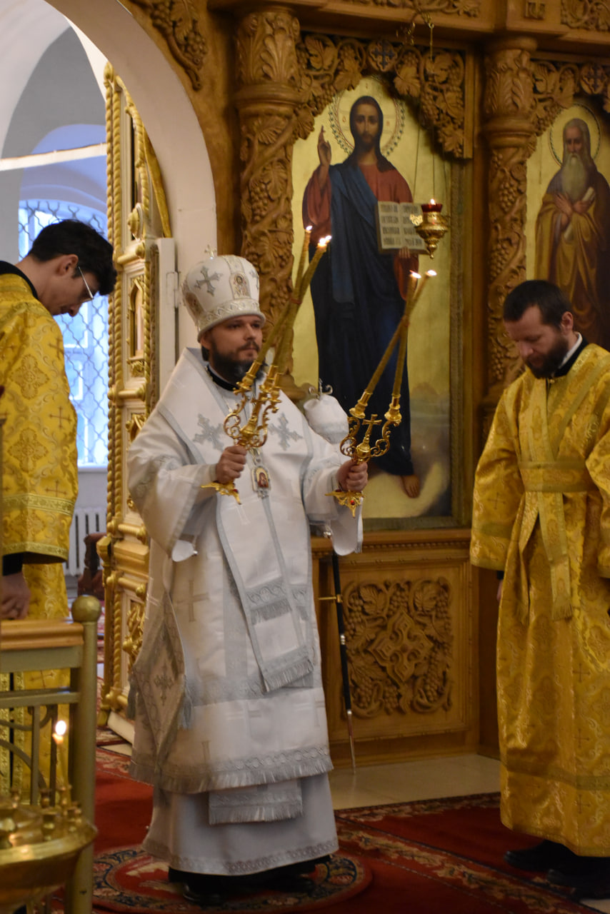 Преосвященнейшему Владыке сослужили клирики кафедрального собора: настоятель Свято-Троицкого кафедрального собора иерей Александр Курмелев, иерей Максим Мамонов, иерей Владимир Покатов.