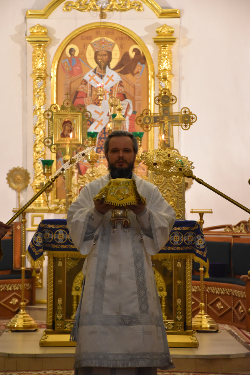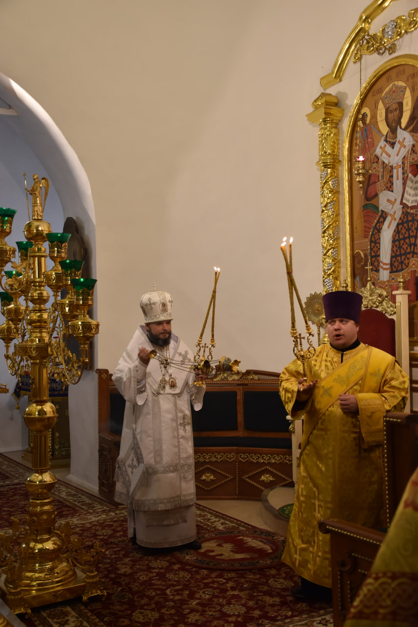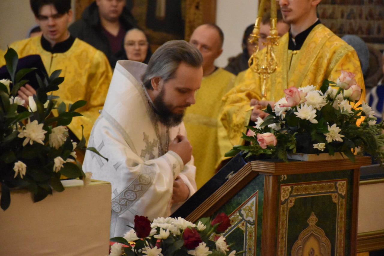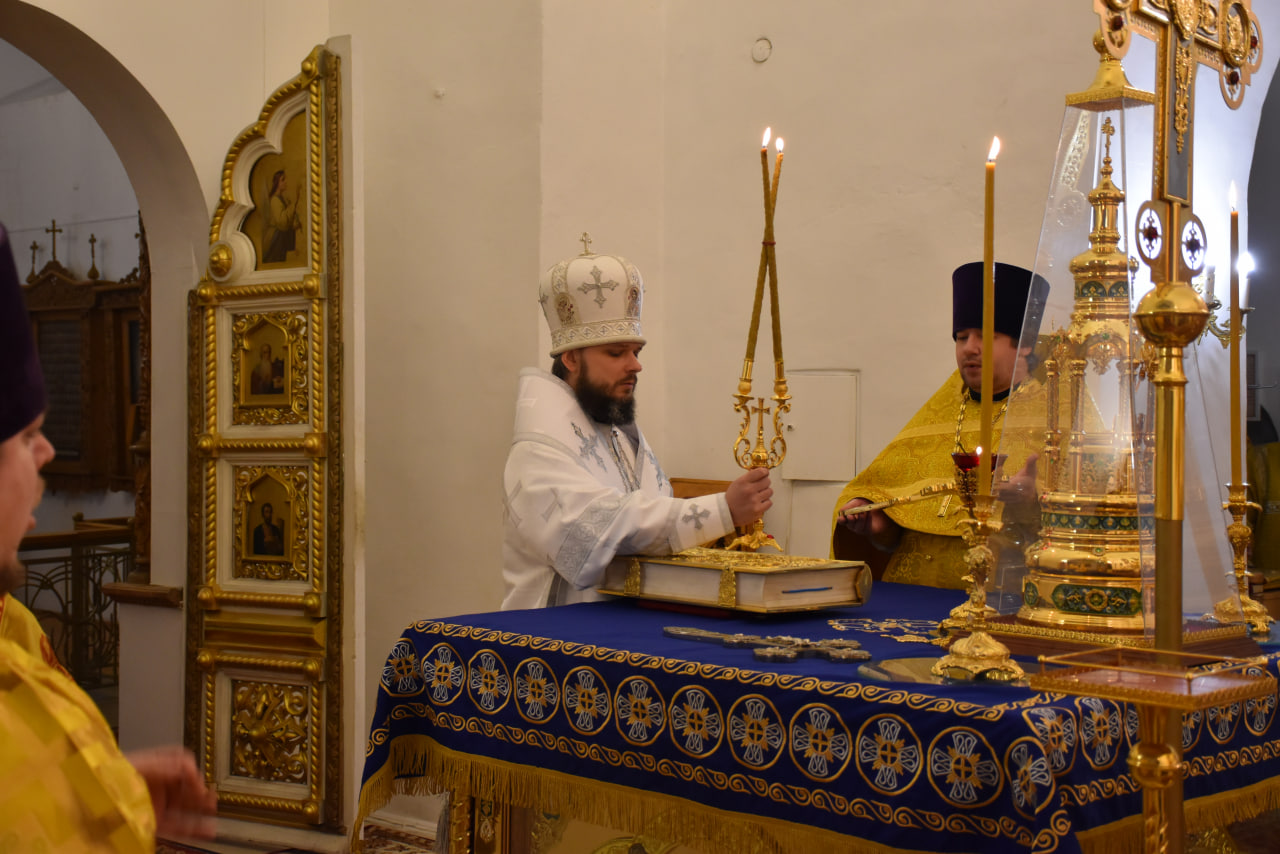 Преосвященнейшему Владыке сослужили клирики кафедрального собора: настоятель Свято-Троицкого кафедрального собора иерей Александр Курмелев, иерей Максим Мамонов, иерей Владимир Покатов.
