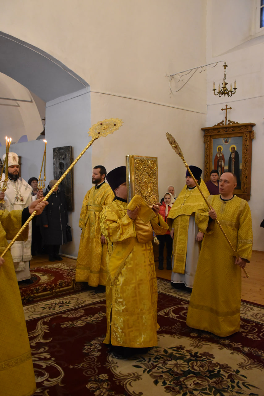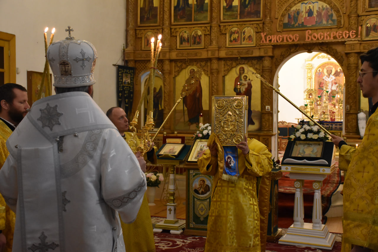 В завершение Литургии епископ Алексий совершил славление образу Божией Матери Иверской, после чего обратился к молящимся с архипастырским словом.