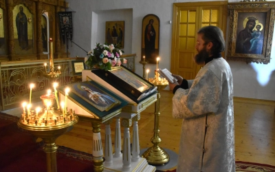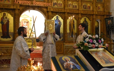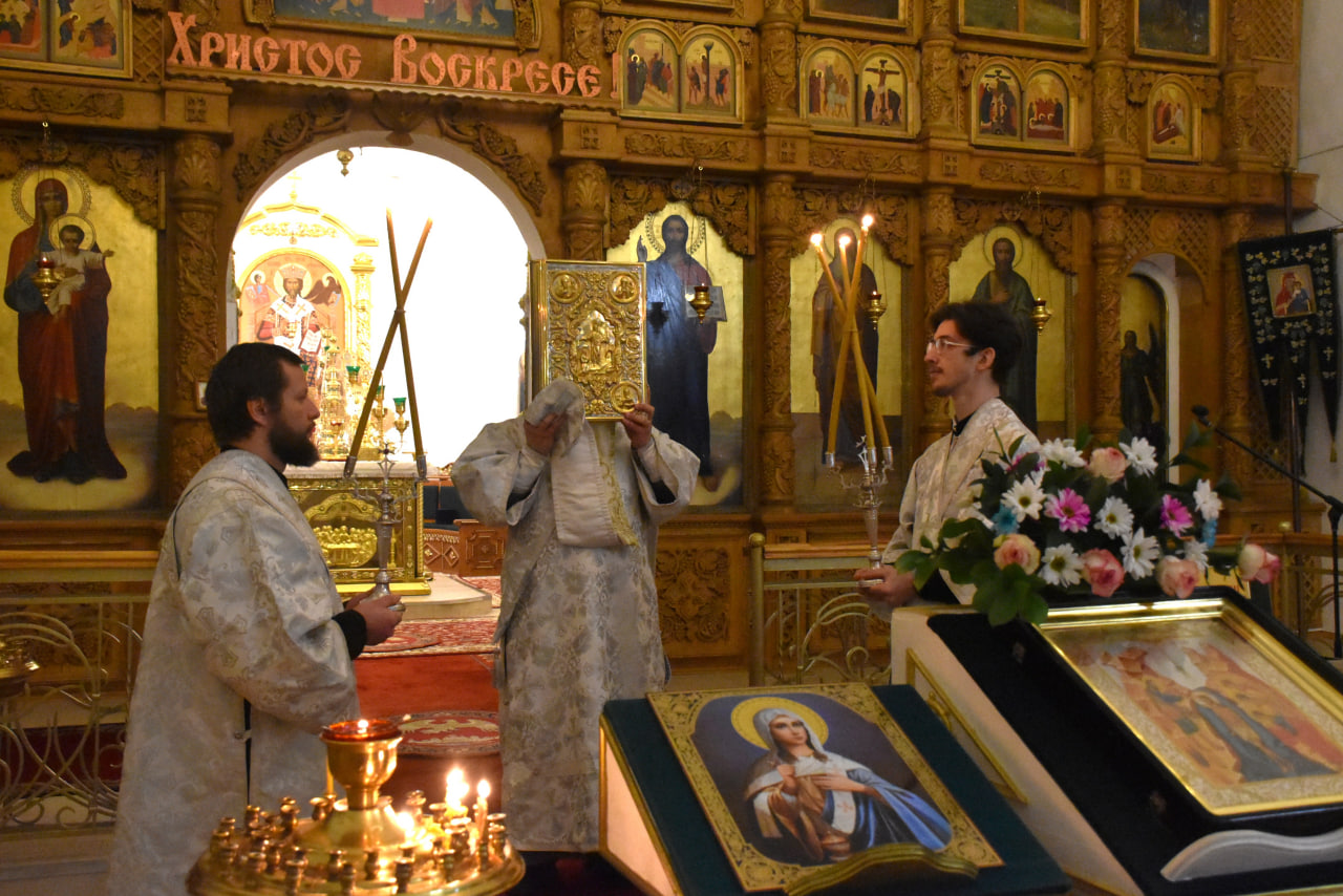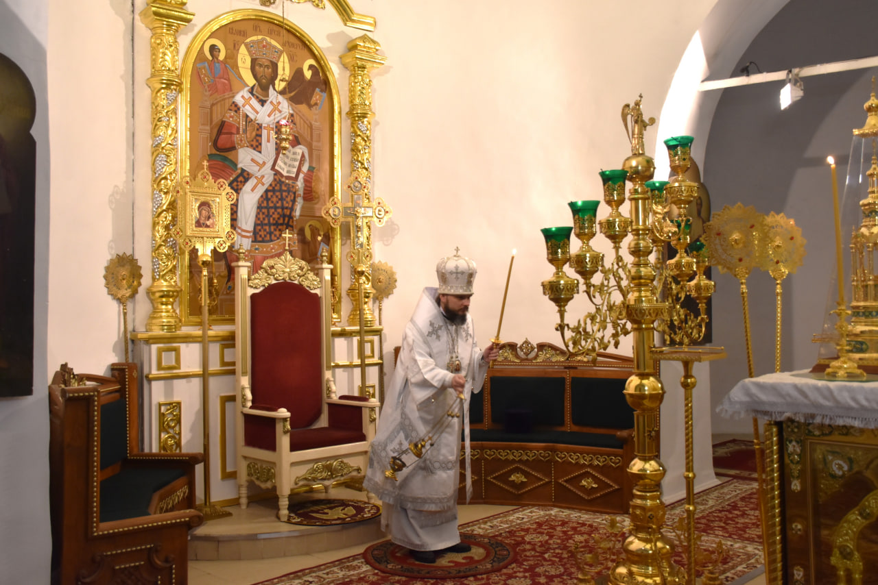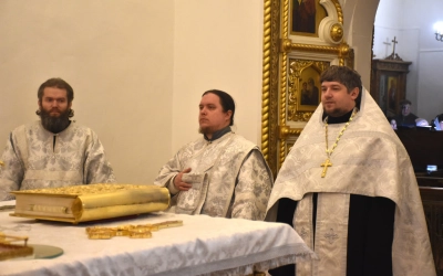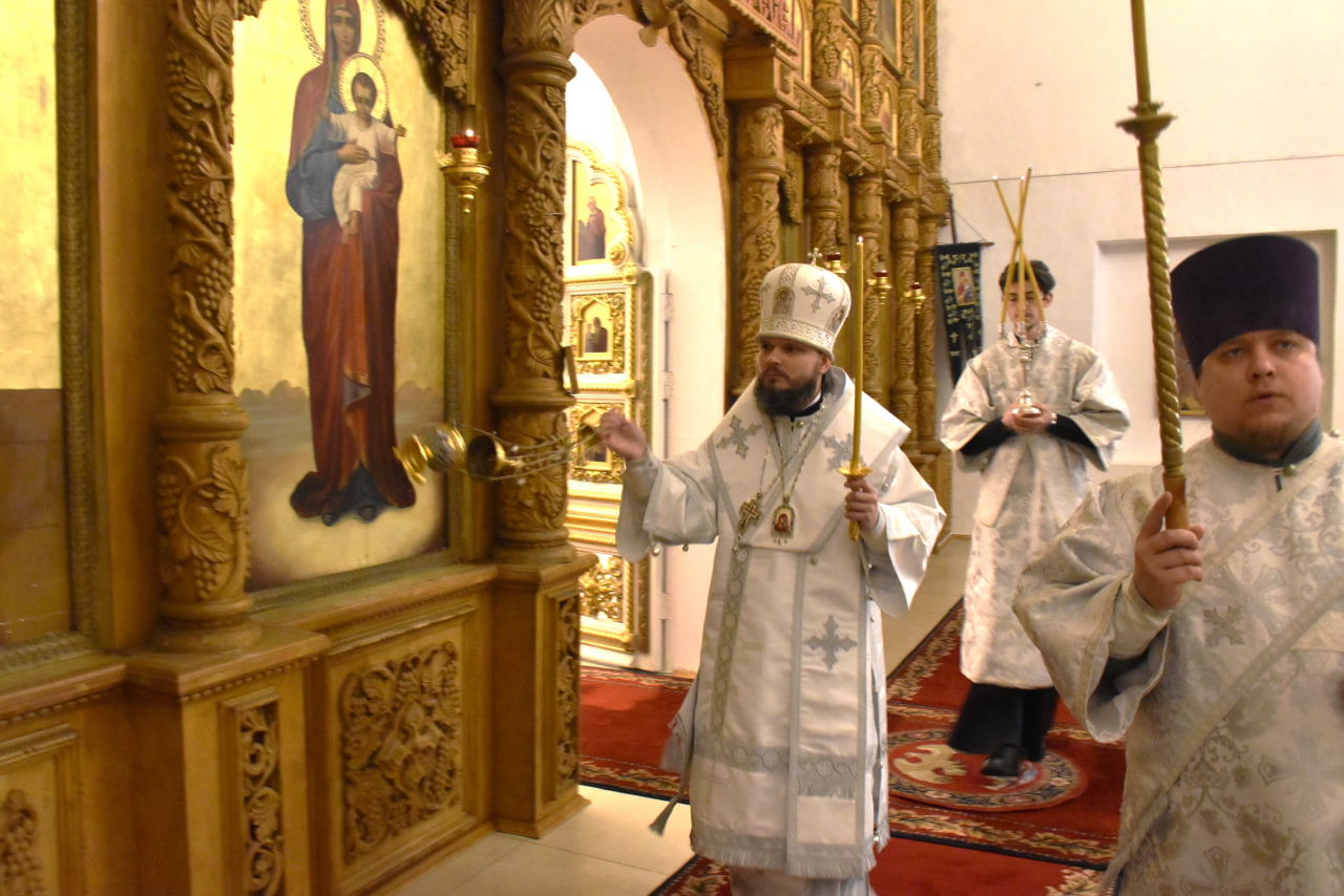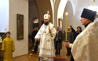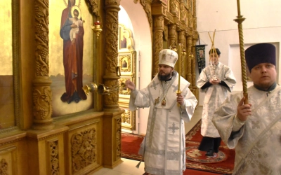 Преосвященнейшему Владыке сослужили штатные клирики Свято-Троицкого кафедрального собора: иерей Максим Мамонов, иерей Владимир Покатов и диакон Евгений Ткач.