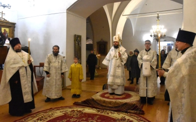 24 января 2026 года, в канун Недели 33-й по Пятидесятнице (по Богоявлении), дня памяти мученицы Татианы и с нею в Риме пострадавших, епископ Вяземский и Гагаринский Алексий возглавил Всенощное бдение в Свято-Троицком кафедральном соборе г. Вязьмы.