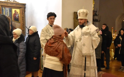 По завершении богослужения Владыка преподал архипастырское благословение всем присутствующим, помазав их освященным елеем.