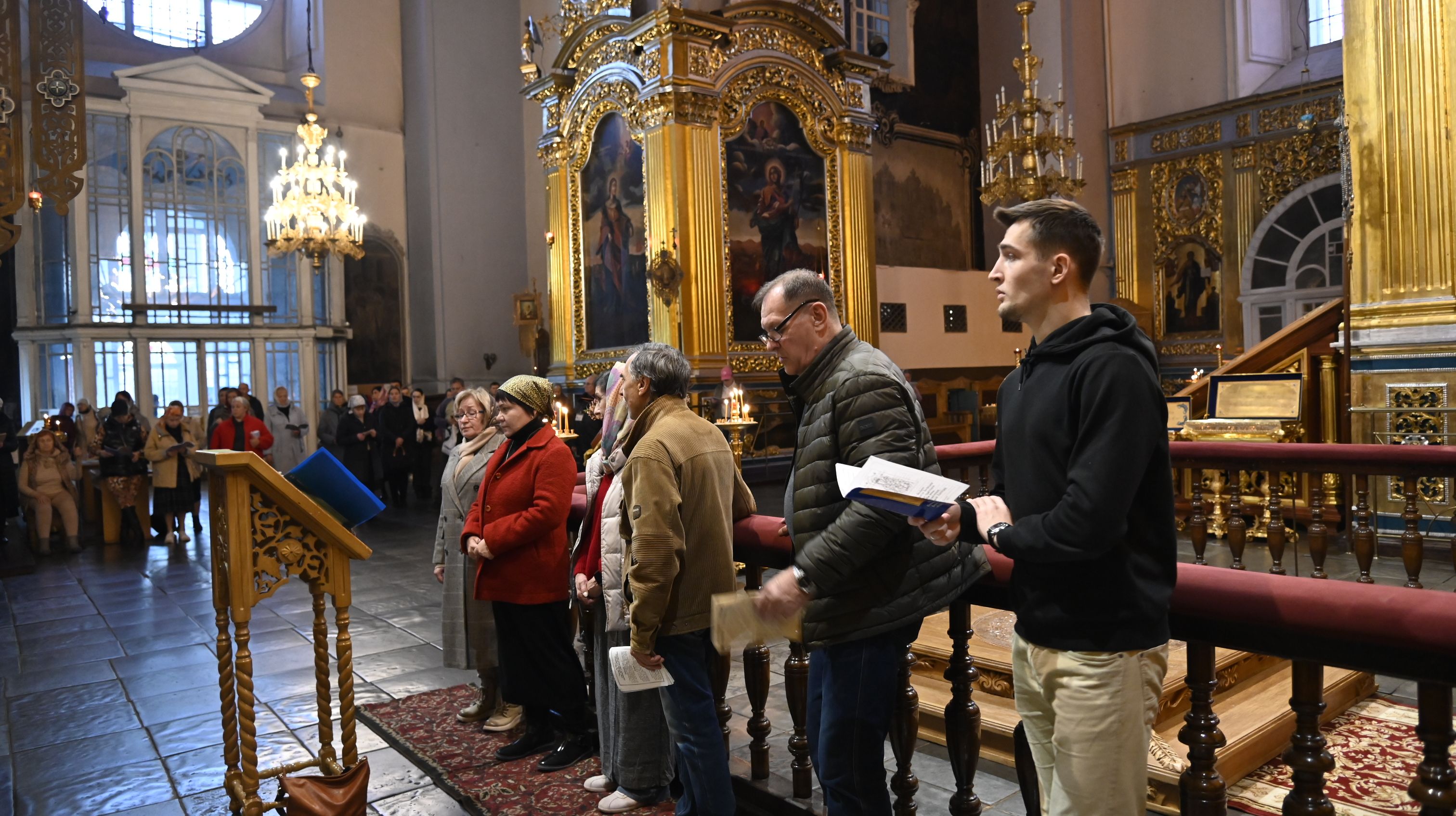 За вечерним богослужением молились прихожане кафедрального храма, жители города Смоленска.
