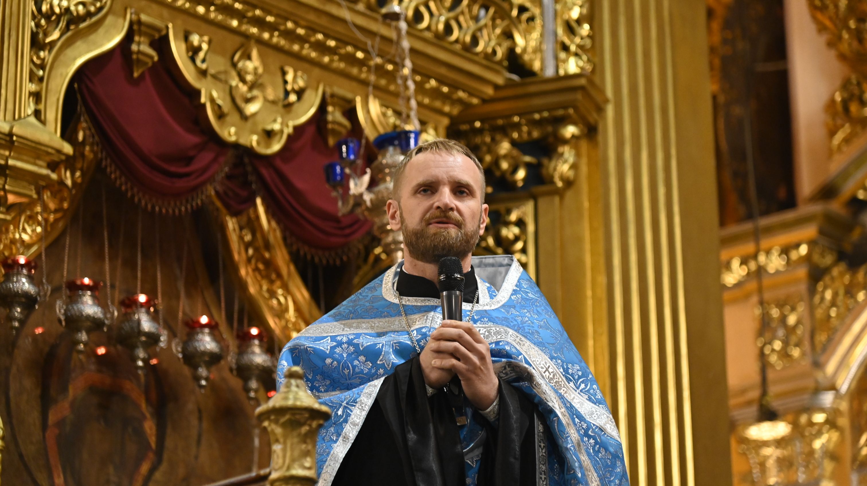 После акафистного чтения со словами проповеди к молящимся обратился иерей Павел Дорошев, клирик храма святой блаженной Матроны Московской города Смоленска.
