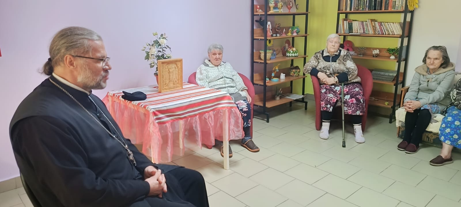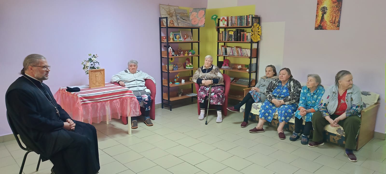 1 октября 2025 года, в День пожилого человека, благочинный Вяземского округа протоиерей Валерий Калинин посетил СОГБУ «Вяземский интернат для престарелых и инвалидов». Священник провёл беседу о главных вопросах жизни в Церкви, о необходимости покаяния и благодарения Богу. В конце беседы были даны ответы на многочисленные вопросы, и в дар интернату была передана резная икона «Воскресение Христово».
