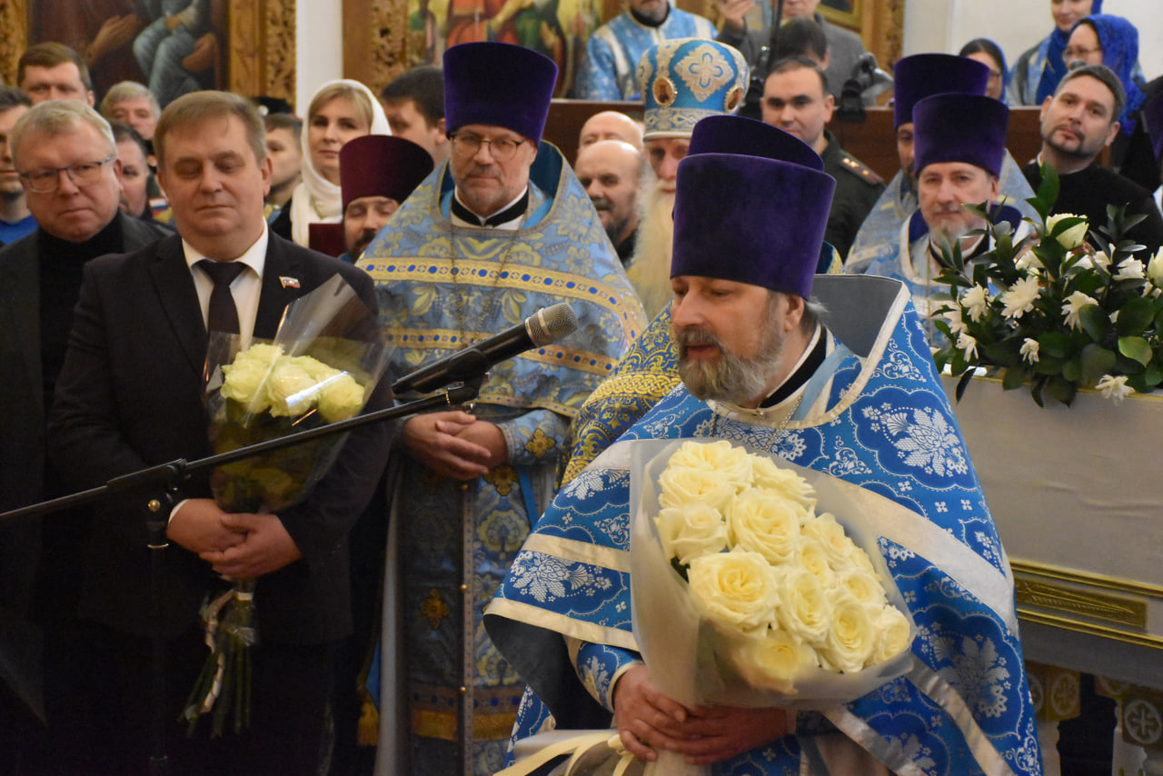 В завершение Божественной литургии со словами поздравления к епископу Вяземскому и Гагаринскому Алексию и верующим города Вязьмы обратился митрополит Смоленский и Дорогобужский Исидор. Также слова поздравления Губернатора Смоленской области Василия Николаевича Анохина озвучил Пётр Юрьевич Мухин.