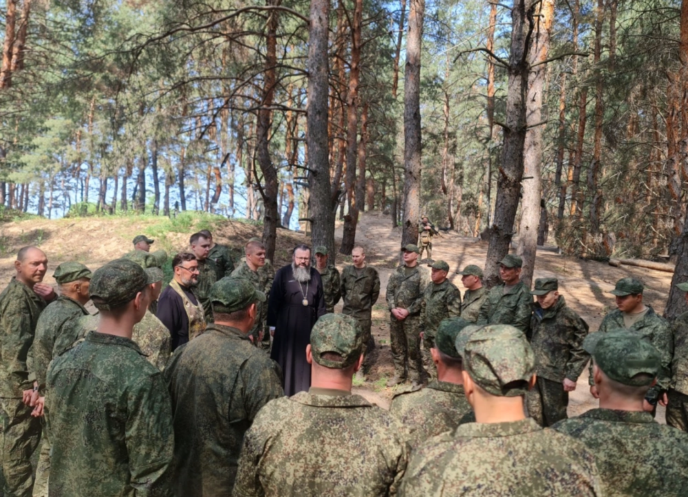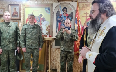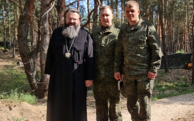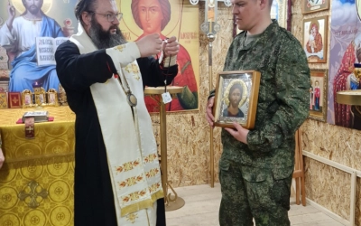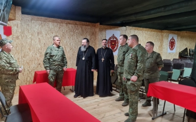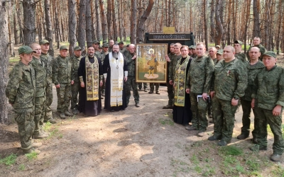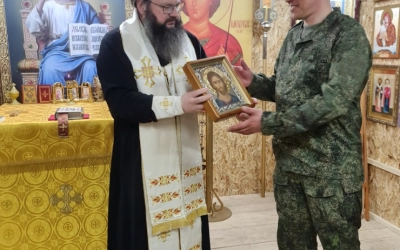 После беседы митрополит Исидор в сослужении иерея Сергия Маркова и иерея Феодора Зинченко совершил в полевом храме молебен о воинах, идущих на брань. За богослужением молились заместитель командира, офицеры и солдаты соединения.