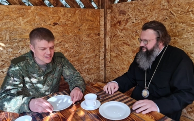 Затем состоялась архипастырская беседа с военнослужащими соединения. Тёплая доверительная беседа с Владыкой Исидором стали для солдат и офицеров значимым радостным событием.