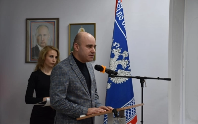 С приветственным словом к участникам обратились исполняющий обязанности начальника управления по научно-исследовательской деятельности ФГБОУ ВО «МГУТУ им. К.Г. Разумовского (ПКУ)» Федоров Борис Константинович; митрополит Смоленский и Дорогобужский Исидор; директор СКИПТБ (филиала) ФГБОУ ВО «МГУТУ им. К.Г. Разумовского (ПКУ)» г. Вязьма Коржикова Надежда Сергеевна; депутат Смоленской областной думы Степаненков Илья Александрович; иерей, руководитель отдела по взаимодействию с казачеством Вяземской епархии, настоятель храма Покрова Божьей Матери Клименков Александр Константинович; советник атамана СОКО ВКО «ЦКВ» Культяпкин Александр Иванович; помощник генерального директора АО «ВЗСП» Гуляев Сергей Анатольевич.