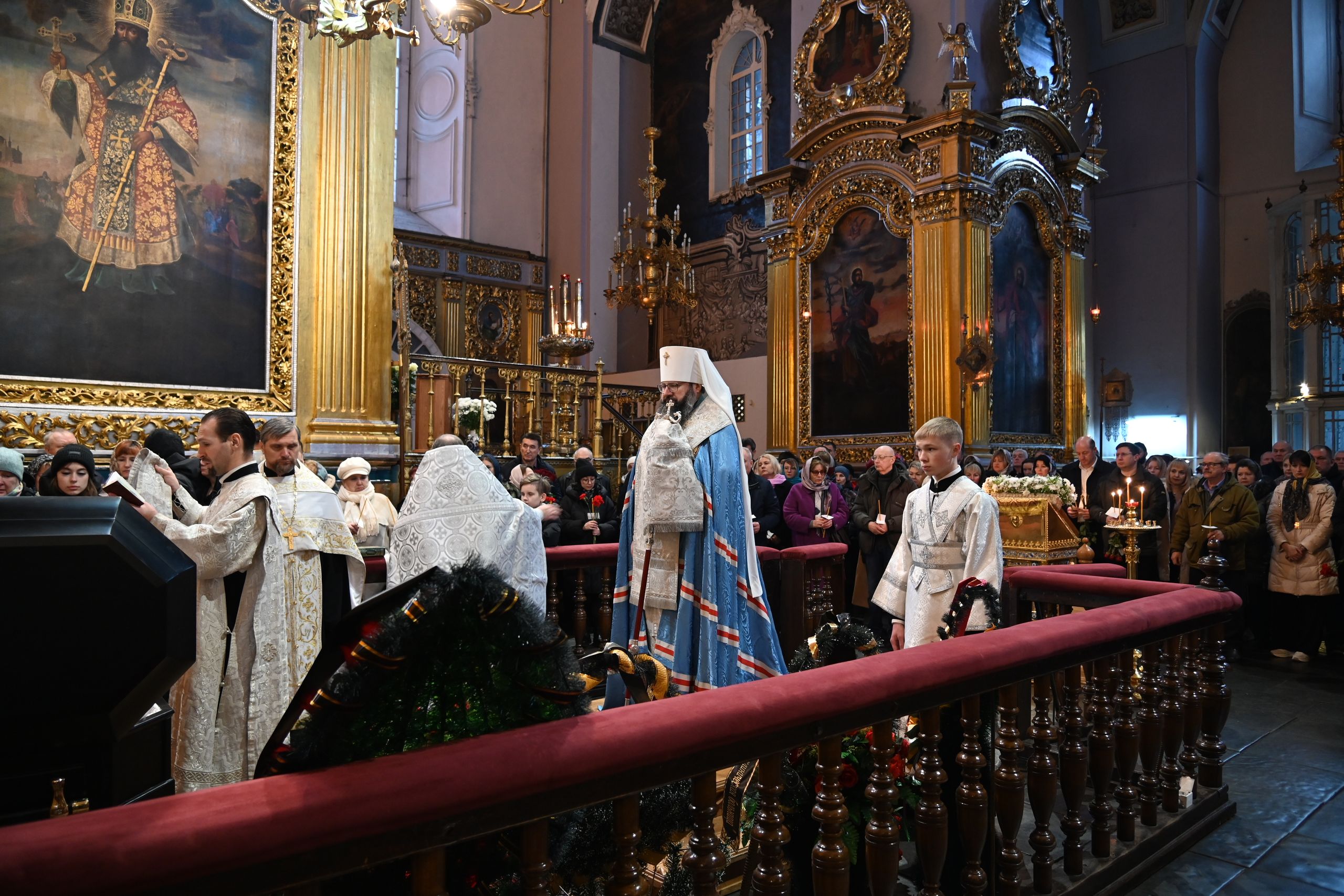 Высокопреосвященнейшему Владыке сослужили благочинный Ярцевского церковного округа протоиерей Василий Мовчанюк, настоятель Успенского собора, секретарь Смоленского епархиального управления иерей Владислав Баган, клирики собора.
