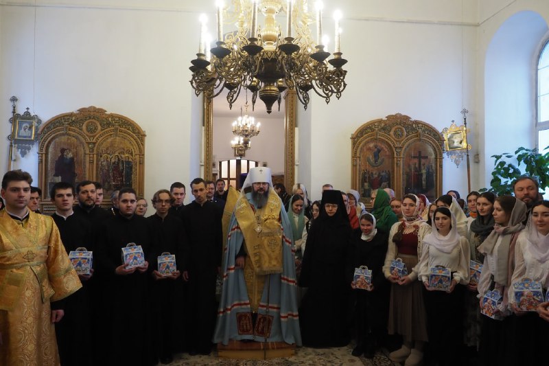 После молебна Высокопреосвященнейший Владыка-ректор вручил каждому студенту сладкие подарки.