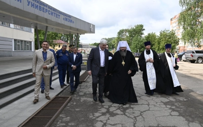 Слава Богу, что сегодня с Божией помощью открывается это благое дело в нашем прославленном вузе, поскольку здесь будут готовиться те специалисты, в которых так нуждаются наши Вооружённые Силы, в которых нуждается наша страна. И все мы, мирные жители, очень нуждаемся в том, чтобы и в год 80-летия Победы, и в последующие годы каждый из нас жил под мирным небом. А, как мы все с вами поняли, это мирное небо достигается только высоким профессионализмом, несгибаемым духом Вооружённых Сил нашей страны, а значит, и всякого гражданина, живущего у нас с вами. Вся страна призвана к тому, в том числе и высшее образование, и среднее специальное, и всякое направление в нашей жизни должно быть ориентировано на то, чтобы обеспечивать обороноспособность страны. Слава Богу, это все происходит.