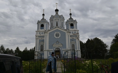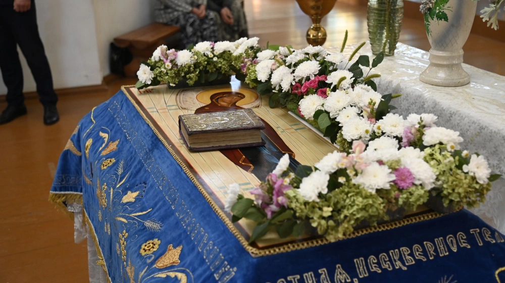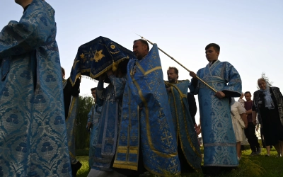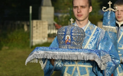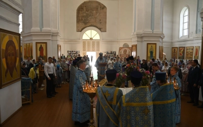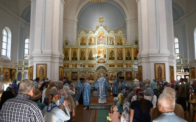 29 августа 2025 года в Успенском соборе города Демидова митрополит Смоленский и Дорогобужский Исидор совершил вечернее богослужение с чином Погребения Пресвятой Богородицы.