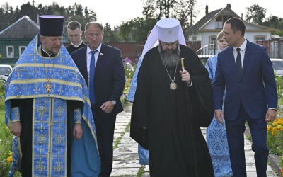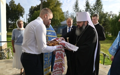 Высокопреосвященнейший Владыка Исидор обратился к молящимся с архипастырским словом, в котором напомнил об истории строительства и возрождения Поречского Успенского собора: